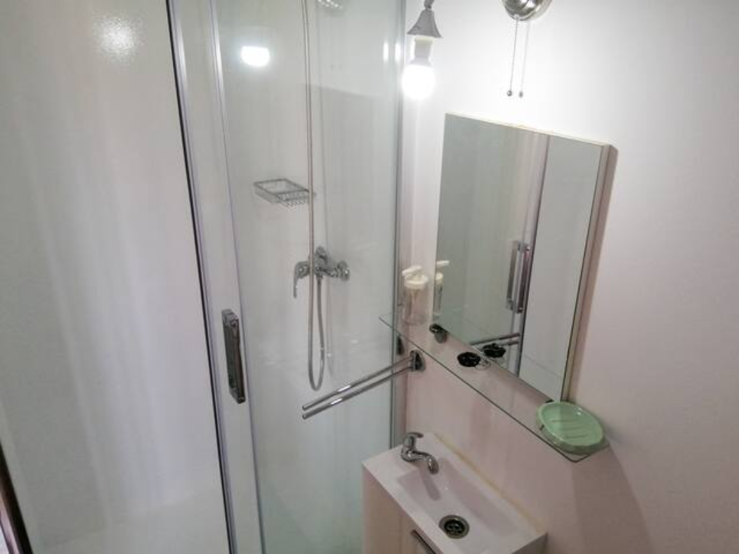 De l'autre côté de la cabine et une petite salle de bain avec douche, lavabo et toilettes. Dans le coin à droite de la cabine se trouve une commode pour ranger vêtements et effets personnels. Nous privilégions un style minimaliste permettant un environnement calme idéal pour se déconnecter du monde pendant quelques jours.